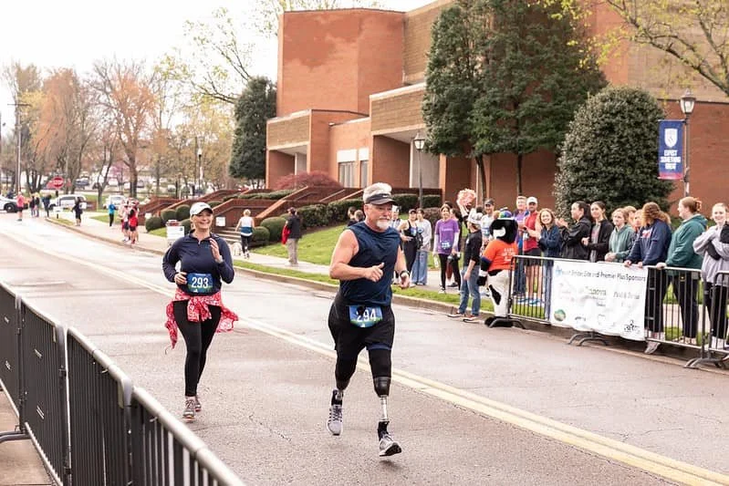 He then continued his recovery with Siskin Outpatient Therapy in Cleveland, Tennessee. Drawing on his athletic background and strong work ethic, Chuck pushed himself each day. By the end of February, just months after his accident, he was walking with the assistance of crutches using his prosthetic legs.